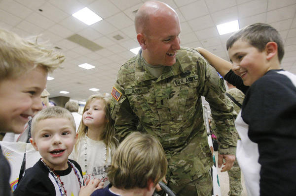 Nine Utah soldiers from the U.S. Army 405th Civil Affairs Battalion returned from Afghanistan Sunday. Enthusiastic friends and family members brought signs, banners and flags to welcome them home at Salt Lake International Airport.
