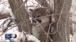 Charlie Stevens was shoveling snow when he encountered the cat, hiding in a window well.