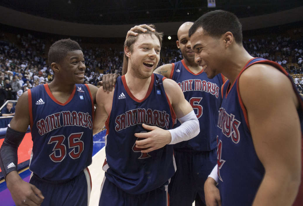 The Gaels inbounded the ball to the senior star from Australia, who caught it near the scorer's table, moved across half court, and launched a prayer from the M of the Marriott Center logo on the court. The final horn sounded, and thousands of fans watched in horror as the ball dropped right through the rim.