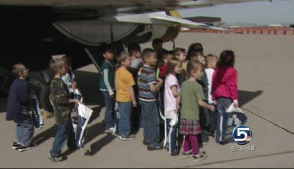 So, on Kids' Deployment Day, students from Hill Field Elementary School got a closer look at a Thunderbird F-16. They also boarded a C-130 transport aircraft.