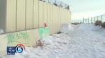 On Monday, there were signs that some of the graffiti in the area was relatively new. Flecks and drops of red paint lay scattered across the snow near a tag on a concrete wall.