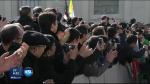 Pope Benedict XVI rode through a crowd of 150,000 people gathered at St. Peter's Square wishing him farewell. The crowd cheered, carried signs of support and even passed a baby for him to kiss.