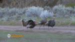 Turkeys are interesting birds- they're large, colorful and hard to miss when they are in a demonstrating mood. Male, or tom, turkeys have a number of features that experts believe are intended to attract female turkeys. These include the familiar fleshy red wattles on its neck and throat as well as the display of "strutting", in which a male turkey puffs out his feathers, spreads his tails and drags his wings.