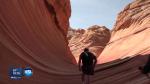 The slick-rock wilderness is just a warm-up. It's a three mile hike starting in Utah, crossing into Arizona the last few hundred yards.