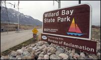 Absorbent booms remain in place at Willard Bay, with its northern half off limits to boating and fishing. The campground and the launch area, too, remain closed.