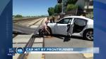 The woman then exited the vehicle and tried to get help raising the crossing arms, but was unsuccessful, Whinham said. She was still outside the car when the train hit, ripping off the front of the vehicle, while the child remained in a car seat in the back seat.