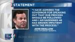 Late Tuesday, Swallow issued a short statement regarding the governor's comments.