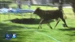 Anderson got her cellphone to get video of the cow running around her trampoline, dodging officers. Eventually, the cow slipped and fell, and officers pinned it down until they could control it — giving everyone a story they won't forget.