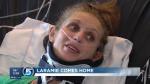 Her bright countenance masks the extent of her injuries, but Riggs is determined in her recovery.