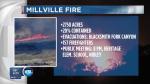 About 2,750 acres have burned and the fire was 20 percent contained. More than 170 were battling the Millville Fire, which started Sunday morning by lightning.
