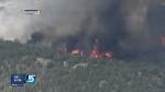 "We have a number of hazards still out there. They're still chasing the fire and we have downed power lines," said fire management officer Steve Rutter. "These 500-gallon propane tanks they have around their homes, the valves have burned so they're leaking propane. So we can't put people in. The water is off. So there's really no way we can logically let people in yet."