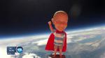 The launch was a success. Bobblehead Blair soared 95,000 feet into the air and touched space before the weather balloon popped.