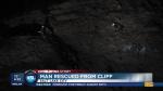 They reached him around 3:30 a.m. and attached him to a rope system, then lowered him 80 feet to a ledge. From there he was taken to an ambulance but he did not appear seriously injured.