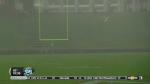 The game was delayed and the stadium was cleared for 2 hours, nine minutes at the end of the first quarter when lightning was reported in the area. The storm eventually brought a heavy downpour, too.