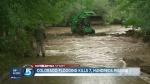 Along Olde Stage Road, the water still flowed down the street and down some driveways Monday. Several homes against the mountainside now had boulders where their long driveways once sat. One property had three of its vehicles all pushed together by the roaring water.