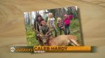[CG :2 Line\Caleb Hardy\WINNER!] But our winner tonight is a buck nicknamed the "team buck." Caleb was up at the family cabin giving the kids a ride on the four wheeler, when his brother in law Corey came running up and told him to grab his bow as Caleb's father in law Jim had spotted him a buck. Caleb's in-laws, led him right to the deer where he made a picture perfect 20 yard shot and dropped the buck right in his tracks. Because it was a team effort, Caleb has decided to mount the buck and hang it in the family cabin, that you can actually see right here in the picture. What a shot Caleb and to help you cook up some of those back straps were sending you and your family our big prize for having just arrowed our snapshot of the week.