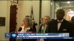 McConnell made no mention of the polls showing that the shutdown and flirtation with default have sent Republicans' public approval plummeting and have left the party badly split nationally as well as in his home state of Kentucky. He received a prompt reminder, though.