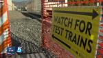 Two trains are testing the line daily at speeds up to 25 mph, but they slow to 10 to 15 mph at crossings.
