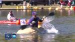 Then, on Saturday, he cut into it, hollowed it out and climbed inside to race in the 3rd annual Pumpkin Regatta at Sugarhouse Park. It is an event hosted by the Mountain Valley Seed Co., which distributes giant pumpkin seeds to members of the Utah Giant Pumpkin Growers Association every year.