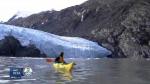 As our two kayaks approached the active face of Portage Glacier, Burgess decided not to get too close. Occasional loud, explosive cracks could be heard as icebergs calved off the glacier into the frigid lake.