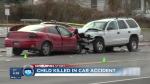 The Pontiac, driven by an adult male, carried two children. One child in the vehicle was killed in the collision, Clinton police said.