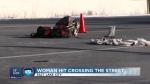 The speed limit is 40 mph, and police said speed does not appear to be a factor. The woman driving the car was not injured.