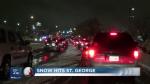 St. George Police Sgt. Sam Despain said city streets were "packed and covered in slush, ice and snow" and he advised residents to stay home and avoiding driving unless absolutely necessary. SunTran bus service was also stopped for the evening and would remain closed indefinitely until the roads could be cleared.