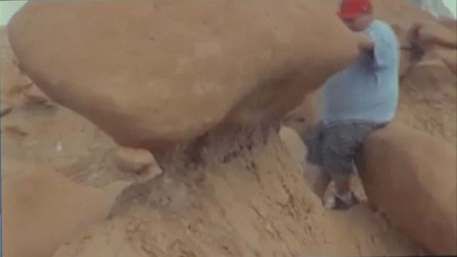 A cellphone video showed Glen Taylor pushing over one of the boulders at Goblin Valley State Park.