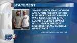 He said once the decision to deny a stay was made by a court rather than a single judge, he was ready to follow other counties in the state and begin issuing licenses as the clerk's office reopened after the Christmas holiday.