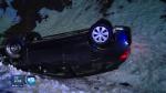 "The vehicle crossed into oncoming traffic, corrected and then obviously ended up here, on its top," said UHP Sgt. Wyatt Weber, standing next to a car that rolled while traveling from I-215 to eastbound I-80.