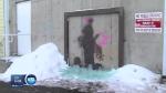 The responding officer spotted another damaged Banksy piece, a mural of an angel located near the steps to the garage at 537 Main, on his way to the scene. The glass covering on the mural was shattered and the piece entirely blocked out with brown spray paint, according to police.