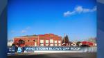 Resident Brandon Behling said he went to see the damage Sunday afternoon. The west side of the roof was pulled off by winds with gusts in the area up to 55 mph. Behling could see the tin covering the rest of the roof buckling and lifting.