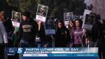 Those in the march held signs depicting King and chanted, "The people united will never be divided. MLK led the way. Stand up for social justice today."