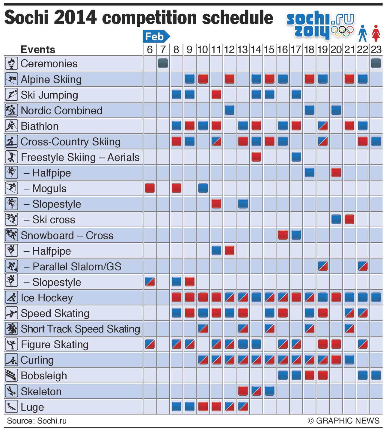 SALT LAKE CITY — We're just 21 days from the 2014 Winter Olympic Games in Sochi, Russia and here's a head start to adjusting your schedule to make sure you catch your favorite events.