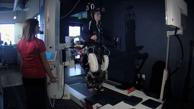 Almost a year ago, Sackett was suspended by a unique machine called "Lokomat" at the Neuroworx Center. The robotic system moved his legs for him in the beginning stages of rehab that teaches the quadriplegic to mentally bypass the paralysis.