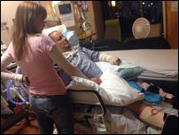 Dylan and his family spend almost every day visiting his dad at the hospital.
