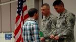 And it's something his commanders never forgot. So Saturday morning at Camp Williams, in front of friends, family and fellow soldiers, Artalejo was awarded a Purple Heart.