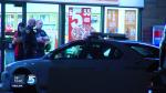 The gunman was described as a large adult who appeared to be in his 20s and from the Pacific Islands, about 6 feet tall, according to witness statements. He was wearing a blue shirt with a checkerboard design, blue jeans and a blue stocking cap. The driver of the car was described as a white man with dark curly hair who was wearing a light tan jacket.