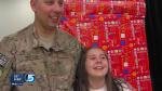 The first stop was Addie's sixth-grade class, which came together for a patriotic assembly. She led the group in reciting the Pledge of Allegiance. Then a special speaker came out from behind a curtain. Addie’s jaw dropped. She ran to her dad and started crying as she hugged him.