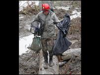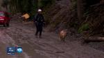 They have also been working to clear mud and debris from the highway, leaving piles of gooey muck, splintered wood and housing insulation on the sides of the road.