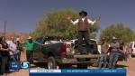 "Our battle is about who owns this land," Bundy's son, Randy Bundy, told KSNV in Las Vegas and his supporters who traveled to Nevada over the weekend to stand with the family.