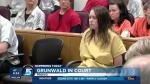 Grunwald's hands and feet were shackled as she sat next to her attorneys Wednesday and listened to the proceedings. It appeared that she did not look at the video screen when the dash cam from Wride's vehicle was played in court.