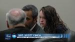 The courtroom was filled with family members supporting both Wride and Grunwald, with the majority from Wride's family. His parents, Blake and Kathy Wride, and his widow, Nanette Wride, sat in the front row of the courtroom gallery. But when the video from Wride's patrol car was shown, they stepped out of the room until it was over.