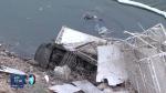 The trailer "for some unknown reason struck the guard rail in that area" and pulled it out of the ground, said Utah Highway Patrol Sgt. Todd Royce. The trailer then rolled over the guard rail, pulling the truck with it.