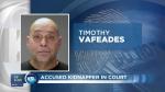 Authorities returned Vafeades to Utah after arresting him last November in Clay County, Minnesota, where a trooper realized the female passenger in his truck had a lifetime protective order issued against him in 1999 in Florida.