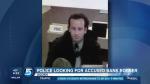 Police released surveillance pictures and described the robber as a white man, 5 feet 11 inches tall, 165 pounds and about 30 years old.