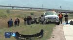 Utah Highway Patrol Sgt. Larry Mower said the vehicle had rolled several times before landing on its roof in the weeds off of the side of I-80.