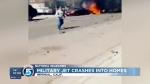IMPERIAL, Calif. (AP) — A Marine jet crashed into a residential area in a Southern California desert community Wednesday, hitting at least one house and setting at least two on fire, but no one was injured, authorities said.