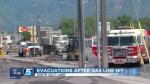 South Salt Lake Fire Deputy Chief Kevin Bowman confirmed that a water main break caused a gas leak Saturday. Crews hit a gas line with a tractor while fixing the water main, Bowman said.