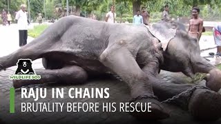 Raju is about 50 years old and was likely captured as a baby. He was bought and sold many times over the course of his life, according to Wildlife SOS. Raju was forced to work with his legs bound in spiked chains which has left him with chronic wounds. He was also beaten by his captors.